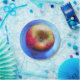 Un design artistique d'une pomme contre un arrière - plan bleu.