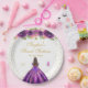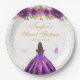 Cette plaque de sweet sixteen élégante et glamour présente une belle princesse aux cheveux brunes et à la peau claire dans une robe violette foncée. Le texte combine écriture manuscrite et polices sans serif modernes pour un look élégant et sophistiqué. Les compositions florales, les papillons et les confettis d'or créent un mélange parfait de rustique et de chic. Graphiques par www.etsy.com/uk/shop/SunflowerDayLove