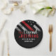 Cette conception comprend un drapeau de pompiers avec des rayures noires et blanches, ainsi qu'une fine bande rouge. Le texte "La légende prend sa retraite" se trouve au-dessus du nom du pompier, lieutenant ou chef qui prend sa retraite. Fêtez dans le style !