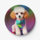 Assiettes En Carton Poodle blanc avec oreilles de crème sur arc-en-cie