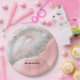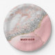 Belle agate en marbre rose avec parties scintillant rose en or et en argent. Nom personnalisé
