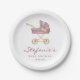Invités Invitations à votre événement avec ces plaques de baby shower personnalisables. Il présente une aquarelle illustrant une poussette à motifs floraux. Personnalisez en ajoutant vos détails. Ces plaques en papier baby shower rose sont parfaites pour It's a Girl baby shower.