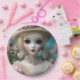 Portant Un Grand Casquette Bijoux Avec De Gros Yeux Bleus Et Des Joues Roses Est Une Plutôt Vintage Poupée.