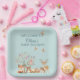 These adorable baby shower plates feature a woodland fox, sleeping bear, deer, birds and some mice all gathered around the base of a flowering tree. They're all wearing flowers in their hair for the party. Easy to use template is provided for you to put in the Mom to be's name. This matches the entire Woodland Animals collection in our shop, so be sure to take a browse around.