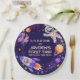 Ce garçon de premier anniversaire "premier voyage autour du soleil" design comprend une fusée, un astronaute, des planètes, des comètes, et beaucoup d'étoiles sur un arrière - plan de l'espace extra-atmosphérique violet foncé. Vous pouvez customiser tout le texte. Voir l'ensemble de la collection correspondante. Toutes les oeuvres sont illustrées à la main par Kaitlyn Thomas et protégées par copyright.