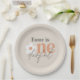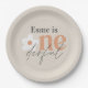 Fête de premier anniversaire fleurie moderne audacieuse typographie boho rétro terracotta, pêche, naturel amusant ironique vintage Onederful fêté fêtes d'anniversaire papier plaque déco de la collection de fête.