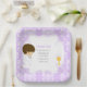 Assiettes En Carton Première Communion Brunette Garçon Purple Damask