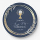 Assiettes En Carton Première Sainte communion bleu et faux feuille d'o