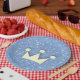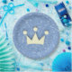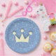 Plaque de parties scintillant bleue artificielle avec l'image d'une couronne. Le rose est également disponible.
