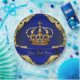 Assiettes en papier prince bleu roi et or avec une belle couronne de bijoux bleu roi et or et bannière bleu et or pour votre texte sur un fond tourbillonnant bleu riche et or. Ces belles assiettes en papier bleu roi et or sont facilement personnalisables pour votre événement en ajoutant simplement votre texte dans le style de police que vous préférez.