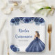 Cette assiette de Quinceanera est ornée d'une belle princesse dans une robe bleu marine à motifs floraux. C'est parfait pour une douce fête de Quinceanera.