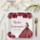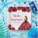 Cette assiette de Quinceanera présente une belle princesse dans une robe de boule rouge bordeaux aux arrangements floraux. C'est parfait pour une douce fête de Quinceanera.