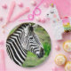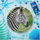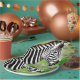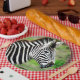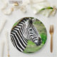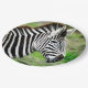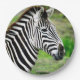 Ensemble de huit plaques de papier de 9" avec l'image d'un profil de zèbre. Voir la fiole, le verre fusionné et les dessous de verre correspondants. Voir l'ensemble de la collection Safari Plate dans le FOOD/BEV | Section Plats.