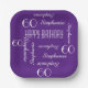 CHOISISSEZ VOTRE COULEUR et créez votre propre plaque de papier élégante et personnalisée pour une fête du 60e anniversaire ou toute autre occasion. Le nom et l'âge se répètent en blanc. Ce style est par défaut un arrière - plan violet profond, mais vous pouvez facilement sélectionner une couleur arrière - plan différente. Vous êtes le designer ! Facile à personnaliser - il suffit de CHANGER LE NOM, L'ÂGE et L'OCCASION EN UN SEUL ENDROIT. Prend en charge le nom jusqu'à 9 caractères. Une plaque en papier élégante, élégante et moderne pour la fête d'anniversaire. Choisissez carré ou rond. Des serviettes assorties sont disponibles dans ma boutique zazzle, SocolikCardShop. Tous droits réservés © 2015 Alan & Marcia Socolik.