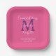 Cette plaque papier peut être n'importe quelle couleur arrière - plan que vous sélectionnez. Arrière - plan est rose; monogramme est violet aubergine dans une police serif classique; texte est un script blanc sophistiqué. Ce design simple et minimaliste est parfait pour une fête de fin d'études secondaires, collégiales ou universitaires. Tous droits réservés © 2025 Alan & Marcia Socolik..