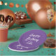 Cute et amusante plaque de papier de fête pour n'importe quel âge, avec un arrière - plan violet, un message d'anniversaire heureux, et de l'espace pour ajouter tout texte personnalisé comme un nom ou un âge.