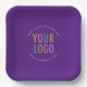 Promote your brand with durable square paper plates printed with your company logo. You can easily personalize these purple plates online to match any event or promotion. All colors are customizable. FDA-compliant, these plates are printed in the USA and sold in small order quantities. The size options are 9 x 9 inches and 7 x 7 inches. No setup fee.