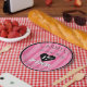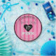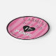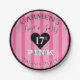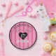 Sweet & Sassy PINK Stripes Pyjama|Plaques en papier d'anniversaire Rose Noir et Blanc rayures roses sur le devant avec coeur noir surdimensionné montrant personnalisable AGE de l'invité d'honneur. Idéal pour les fêtes adultes et ados matures ! ©Miss Sassy Designs