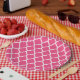 Assiettes En Carton Quatrefoil chaud rose et blanc marocain