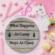 Ce qui se passe lors des séjours au camp est un design créé par Debbie Quick of Debs Creative Images. Ce design a été créé à partir d'une photo que Debbie a prise d'un côté d'une grange, puis a ajouté du texte dessus.