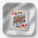 A striking Queen of Hearts playing card is elegantly displayed on luxurious white satin fabric