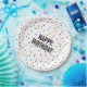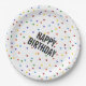 Plaques en papier pour fête d'anniversaire motif Rainbow Dots - Ces plaques en papier sont en pois arc-en-ciel et les mots "Joyeux anniversaire" en gras.