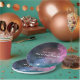 Cette plaque de papier d'anniversaire colorée de galaxie est parfaite pour une fête "hors du monde". Le design se compose d'un arrière - plan cosmique avec étoiles et typographie moderne.