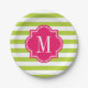 Assiettes En Carton Rayures de vert de chaux avec le monogramme de