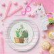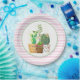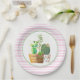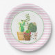 Assiettes En Carton Rayures roses et blanches avec succulentes de cact