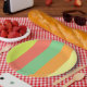 Rayures audacieuses aux nuances lumineuses d'orange, de jaune, la chaux, le corail et l'aqua. Mélangez facilement et match à d'autres produits et conceptions de cette collection.
