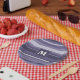 Assiettes En Carton Rayures violettes de cuir monogramme