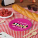 Les plats de partie de piscine les plus frais ou de plage avec le texte que vous pouvez customiser en ligne avec la capacité de customiser la couleur rose d'arrière - plan. Conçu pour un social se réunissant à la maison, la nuit de filles, ou la fête d'anniversaire.