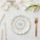Assiettes pour réception de mariage rustique aux feuilles florales dorées. Personnalisez avec n'importe quel texte. Les articles assortis sont disponibles.