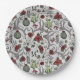 Ces assiettes en papier de Noël de pays festif présentent un motif occidental de pays dessiné à la main avec des crânes et des bois de rennes, des roses rouges, des plantes de cactus et des poinsettias à l'encre noire contre un élégant arrière - plan gris et doux, capturant l'esprit de Noël.