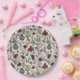Ces assiettes en papier de Noël de pays festif présentent un motif occidental de pays dessiné à la main avec des crânes et des bois de rennes, des roses rouges, des plantes de cactus et des poinsettias à l'encre noire contre un arrière - plan crème élégant, capturant l'esprit de Noël.