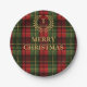 Assiettes En Carton Red And Green Plaid Family Name Christmas