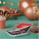 Rendez-vous pour fêter un anniversaire sur le thème du karting. Cette conception de fête d'anniversaire comporte un karting rouge et noir avec un entraînement casqué rouge et des flammes tirant sur le dos du karting. Les mots "Ready, Set, Go !" sont également faits dans un dégradé de flamme. Une paire de drapeaux à damiers débranchent le conducteur.
