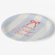 This coquette baby shower paper plate features a red bow on a cream background with Pale blue stripes. Personalize it for your needs. You can find matching products at my store.