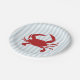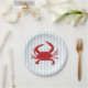 Enjoy our nautical red crab painting blue stripe paper plates for any party.