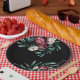 Joli motif floral sur arrière - plan noir donne le ton à cette assiette élégante.