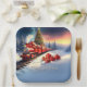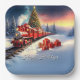 Beautiful Red Train Christmas Tree Holiday Paper Plate