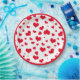 Les coeurs rouges de Saint-Valentin sont dispersés dans un motif aléatoire avec un anneau rouge pour un cadre. Ce design simple et romantique rouge et blanc fera une décoration unique pour votre salle à manger ou cuisine le jour de la Saint-Valentin. Utilisez le coeur rouge romantique pour tout événement romantique ou journée spéciale pour un être cher.