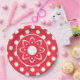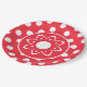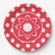 A Red With White Polka Dotted Paper Plate With Boho Flower Center For Any Type Of Party