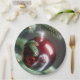 Assiettes En Carton Réflexion Paw du chat blanc dans l'ornement rouge