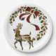 Une élégante plaque en papier de Noël avec un renne doré avec une trace colorée d'étoiles d'or, arc rouge et saint vert en forme de couronne de Noël. Cette plaque en papier de Noël apportera une touche d'élégance et de style à votre repas et divertissement de Noël pendant la période des Fêtes.