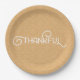Belles plaques de papier damassé avec lettré "Thankful" en blanc sur un arrière - plan de couleur orange d'automne. Utilisez "customisez-le" pour sélectionner une couleur qui correspond à votre fête, à votre thème ou à votre décor !