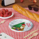 Cette jolie assiette de fête de Noël présente des pins enneigés, un sapin de Noël, le renard Père Noël et un train tchou tchou. Un charmant modèle d'assiette en papier pour une fête qui ravira vos enfants.