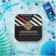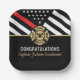 Cette conception comprend un drapeau de pompier avec des rayures noires et blanches, ainsi qu'une fine bande rouge. "Félicitations" et l'insigne d'un pompier se trouve au-dessus du nom du pompier, lieutenant ou chef qui est diplômé ou qui prend sa retraite. Fêtez dans le style !