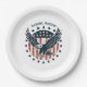 Get a classic, timeless look with our Retro American Eagle paper plate, featuring the iconic stars and stripes in patriotic red, white, and blue. Personalize it with your monogram.