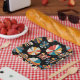 Assiettes En Carton Retro Black Rainbow geometric Flowers Pattern